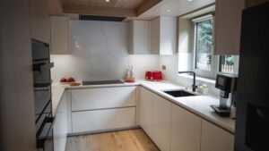 Là où la vie s’anime, entre espace de vie ouvert, cuisine équipée et salon baigné de lumière naturelle, invitant aux instants de partage et aux conversations qui s’étirent au fil des heures.