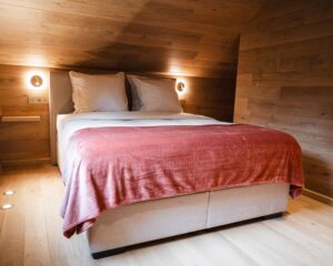 Un havre de sérénité, conçu pour le bien-être et la quiétude, où les chambres au design raffiné assurent un confort absolu, bercé par les matériaux nobles et l’harmonie du bois.